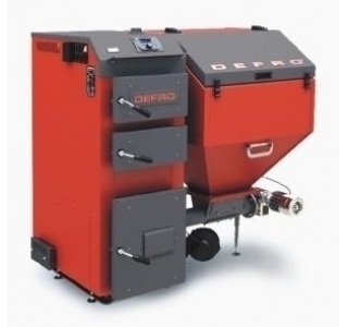 DEFRO EKO DUO - отличительная модель твердотопливных котлов линии DEFRO EKO с двумя камерами горения: нижняя с автоматической ретортной горелкой для угля фракции "Эко-горошек" и верхняя, оборудованная водонаполненными колосниками толщиной 8,8 мм, позволяет сжигать уголь фракции "Орех", древесину и древесную щепу в ручном режиме даже при отключенной электроэнергии. Водонаполненная колосниковая решетка увеличивает площадь теплообмена для автоматического сжигания. Теплообменник модели изготовлен из сертифицированной котельной стали /тип. P265GH/ толщиной 6 - 8 мм. В целях максимального снижения теплопотерь инженеры компании DEFRO оснастили модель дополнительной термоизоляцией.