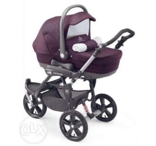 В комплекте: люлька; прогулочный блок с накидкой на ножки; автокресло-переноска Area Zero+; шасси; дождевик; сумка, корзина для покупок.