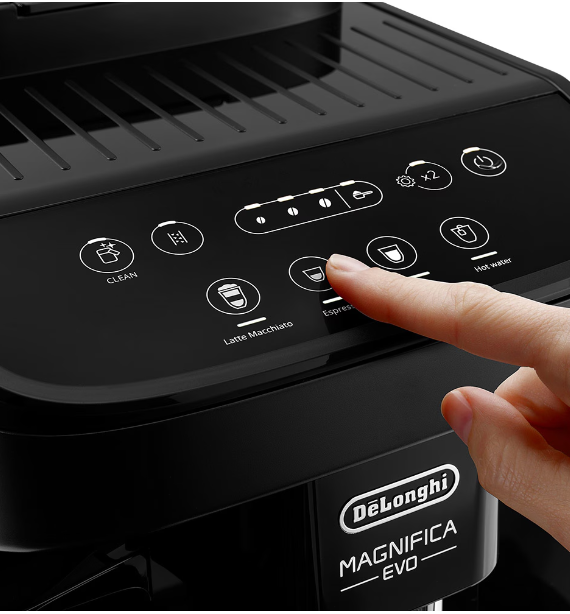Magnifica Evo este un espressor automat, usor de utilizat, cu un design modern si elegant. Bucura-te de experienta incantatoare a cafelei din confortul propriei locuinte cu De'Longhi Magnifica Evo.