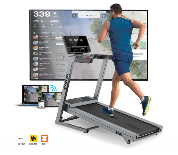 Posibilitatea împerecherii calculatorului cu un smartphone sau tableta prin intermediul tehnologiei Bluetooth pentru controlul benzii prin intermediul aplicației Anyrun/Kinomap;