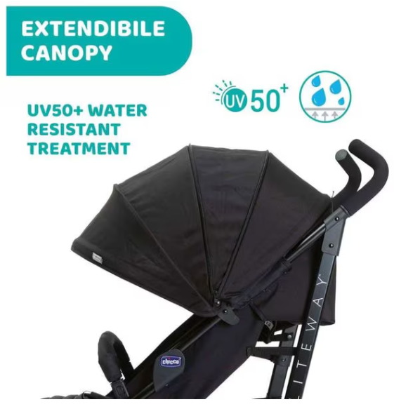 | Другие детали | Благодаря защите от ультрафиолета UV50+ и водонепроницаемости эта детская коляска защитит вашего ребенка во время ежедневных прогулок независимо от погоды на улице; Сочетая в себе элегантность и повседневный комфорт, детская коляска Liteway 4 из линейки спортивных колясок Chicco имеет просторное мягкое сиденье, покрытое прочными материалами, доступное в элегантных и изысканных цветах. |