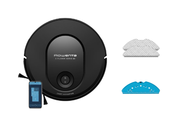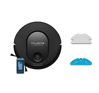Robot de aspirare Rowenta X-Plorer Serie 65 RR8L65WH, aspirator si mop, 168 min, 2600 mAh, recipient praf 0.4L, recipient apa 300 ml, statie de incarcare, mop Smart Aqua Power, negru