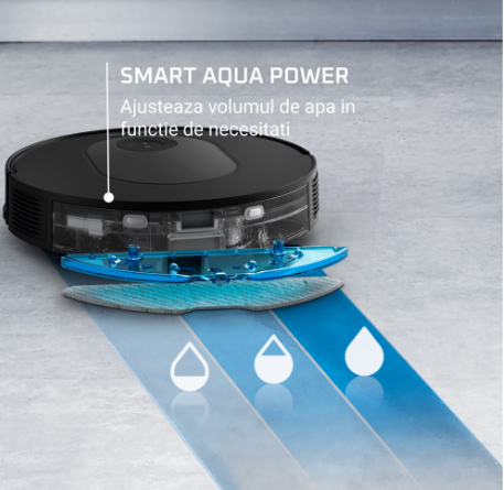 Actiune dubla de curatare Aspira si curata cu mopul in acelasi timp datorita Tehnologiei Smart Aqua Power + o perie laterala pentru zonele greu accesibile si perie Animal Electro.