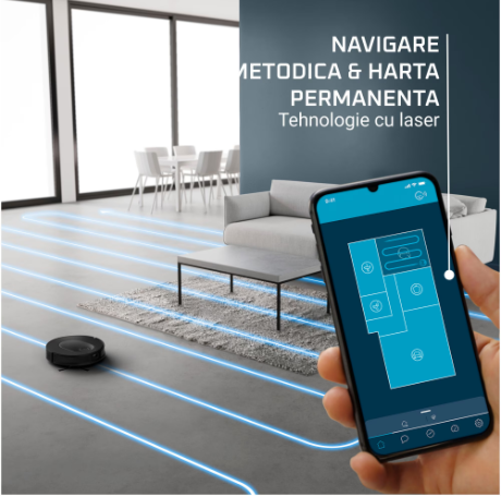 Navigare metodica Tehnologia laser asigura o curatare metodica si o harta permanenta pentru o acoperire completa si curatare optima. |