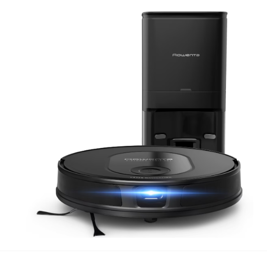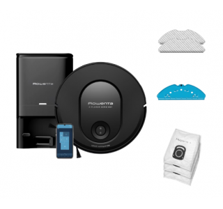 Aspirator robot Rowenta X-Plorer Serie 65+ RR8L85WH, aspirator si mop, 168 min, 2600 mAh, recipient praf 0.4L, recipient apa 300 ml, statie de incarcare si golire praf, mop Smart Aqua Power, negru