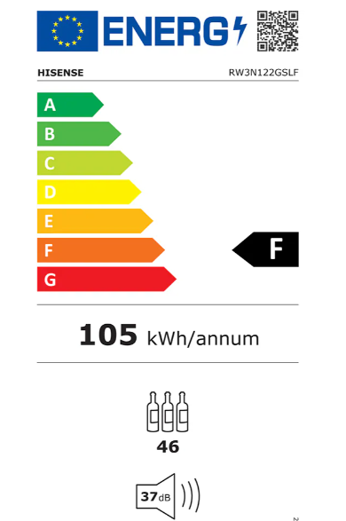 Racitor de vinuri HISENSE RW3N122GSLF, 46 sticle, H 82 cm, Clasa F, Wi-Fi, negru