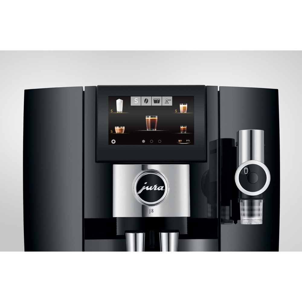 Pentru un confort si mai mare, Coffee Eye detecteaza pozitia cestii si adapteaza automat selectia de bauturi de pe afisaj pentru a afisa optiunile disponibile. Nu putea fi mai usor. Si acelasi lucru este valabil si pentru întretinere, deoarece cu functia de curatare a sistemului de lapte One-Touch, treaba se face în cateva clipe. Calitatea din interiorul masinii se reflecta în designul sau exterior, care completeaza ingineria superioara a lui J8 cu un aspect caracteristic.